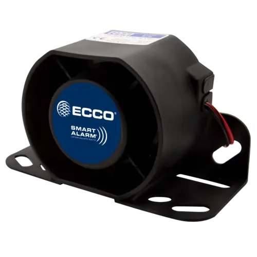 The Smart Alarm® from ECCO was the worlds first self-adjusting back-up alarm, constantly measuring ambient noise and adjusting their sound level, creating a volume that is safe without being annoying or contributing to noise pollution. Smart Alarms® eliminate the need for constant manual adjustment and help prevent intentional alarm disconnection. Bracket includes OEM popular mounting pattern. Steel housing and rugged construction for demanding applications. Reverse mounted speaker enhances sound and protects the alarm from dust and moisture ingress. Sealed in epoxy for protection against dust, moisture and vibration.