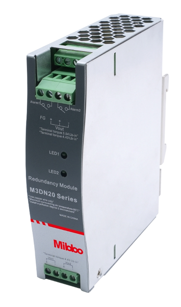 Support 1+1and N+1redundancy system. Channels:2 input and 1 output. Output current up to 20A. Ultra wide operating Temp. -40~+80℃(>+60℃ derating). Suitable for redundancy operation of 12V/24V/48V system. Built-in 2 channels DC OK signal and alarm relay contact. Ultra slim width: 55mm. Cooling by free air convection. Installation:TS35/7.5 or TS35/15.