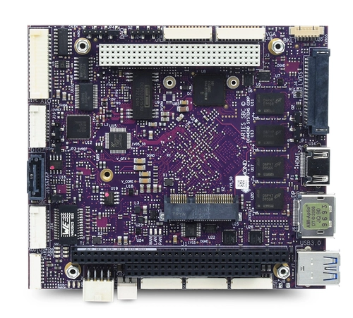 Description The Aries PC/104-Plus single board computer from Diamond Systems uses the Intel “Bay Trail” E3800 series processor to deliver an unmatched combination of performance, price and power consumption. Packed with real-world features, Aries provides a complete solution for most embedded applications in a single board, saving you space, time, and money. Aries goes beyond the standard processor and I/O features found on other Bay Trail SBCs to provide rugged performance along with a professional-quality data acquisition circuit supported by industry-leading software. The full rectangular shape of Aries provides more PCB area and coastline to support the extreme level of I/O offered by the board. Software support for Aries includes Linux, Windows 7, Windows 10, and QNX Neutrino 7.0. Software support includes downloadable drivers as well as complete ready-to-run board support packages (BSPs) preprogrammed onto a solid state flashdisk that installs directly onto the board. Demo programs for the integrated data acquisition circuit are included in the runtime image. Simply install the flashdisk, apply power, and you are up and running. Overview The Aries SBC family features the Intel E3800 "Bay Trail" processor family for high performance, low power consumption, and competitive pricing. Aries offers 2-4 times higher CPU performance over other SBCs with similar size, power consumption, and price. Key features include: Choice of quad core E3845 1.91GHz or dual core E3826 1.46Ghz processor 2 or 4GB memory soldered on board Dual independent display, selectable from VGA, LVDS LCD, and HDMI / DisplayPort A broad range of system I/O, including 4 multiprotocol serial ports, 3 USB ports, 2 10/100/1000 Ethernet ports, and 1 SATA port Integrated HD Audio PC/104-Plus and PCIe MiniCard / mSATA sockets Optional integrated professional quality 16-bit data acquisition Conduction cooling for improved reliability and high temperature performance Rugged construction throughout for shock and vibration immunity Compact 4.5" x 4.0" size -40°C to +85°C operation off the shelf Operating systems support for Windows 7 / XP and Linux 2.6 / 3.2 kernels